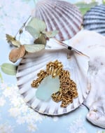 Each pendant is one-of-a-kind, with this one being a pretty bottle neck shape, formed by nature's waves and tides and crafted to bring out its natural frosty beauty. The pale seafoam hue, contrasts beautifully with the on trend warm gold tones, creating an earthy yet elegant boho chic aesthetic. Whether you're a beach lover, a sea glass collector, or searching for the perfect Cape Cod ocean-inspired gift, this necklace is a timeless piece that carries the spirit of the sea. The sea glass also makes an amazing essential oil diffuser if you rub a few drops on your fingers, and it will also make the glass more jewel-like if you want to change it up from the original frosty goodness!