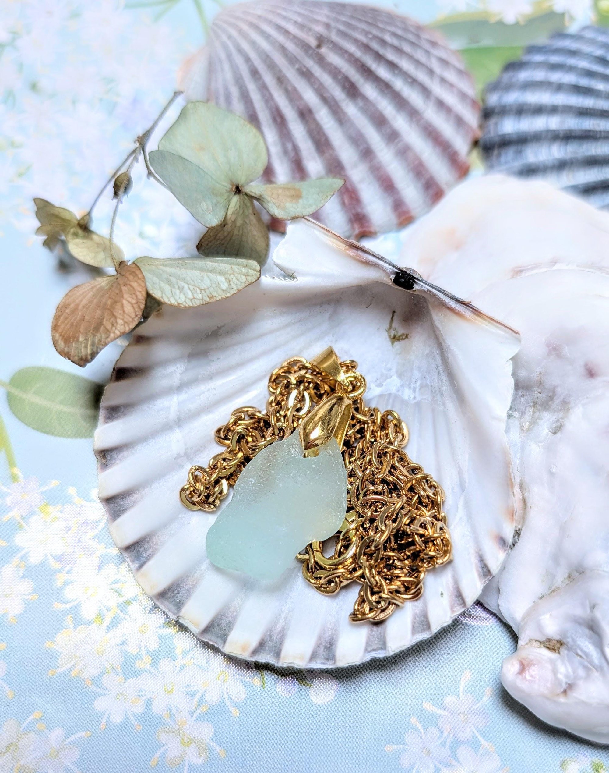 Original product name: Cape Cod Genuine Sea Glass Pendant Pale Aqua Seafoam Real Ocean Tumbled Authentic Cape Cod Beach Glass Necklace With 18in GoldColored Chain