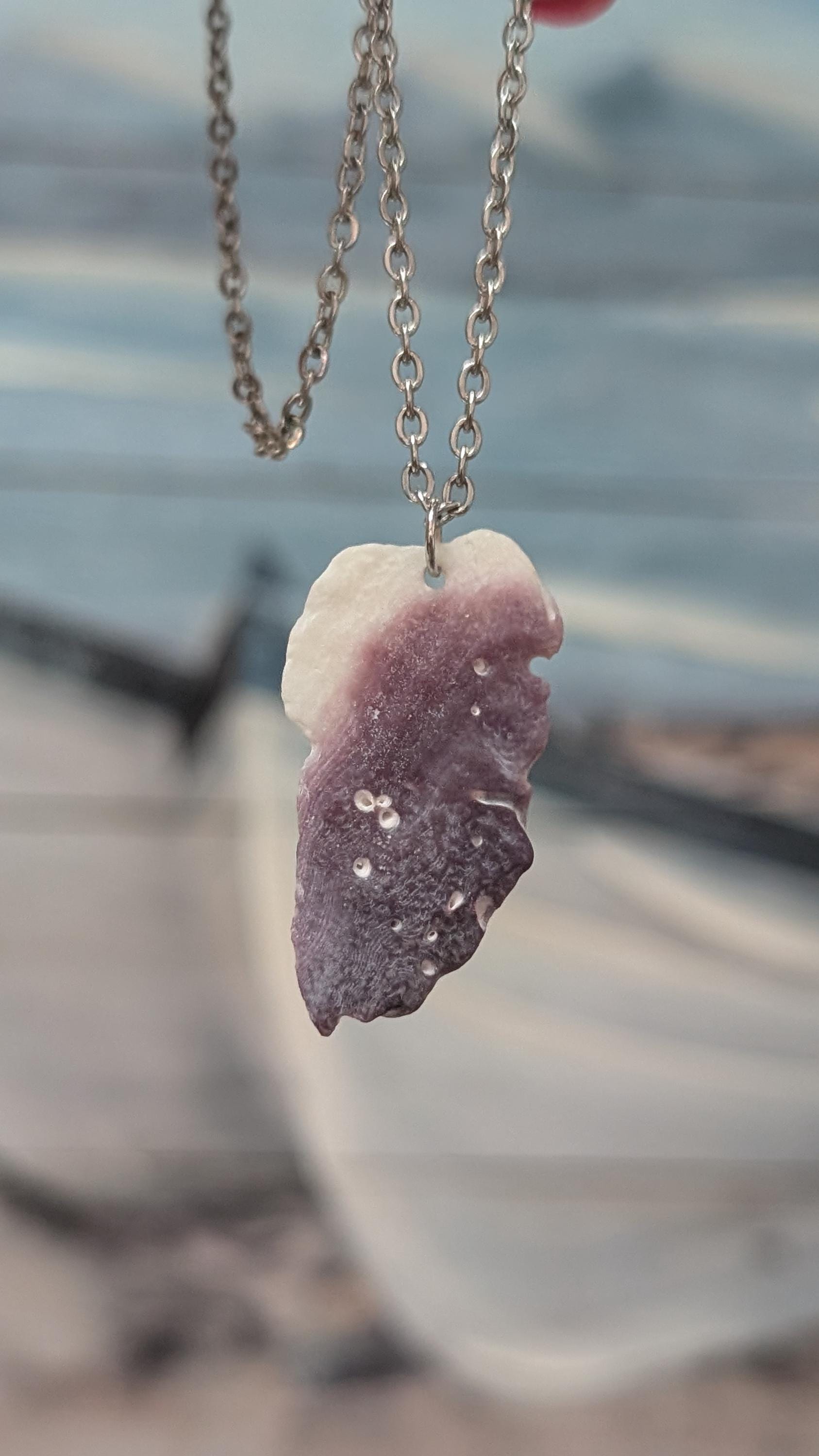 Original product name: Cape Cod Purple Plum Colored Natural Ocean Tumbled Clamshell Necklace Handmade Coastal Gift on 18in Nickel Free Chain free shipping!
